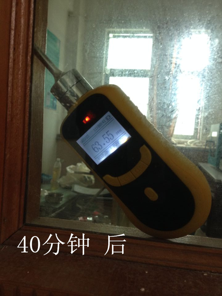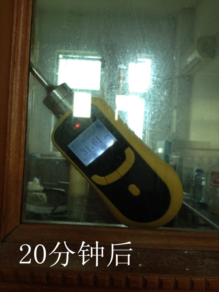 開機20分鐘,使用廣州佳環定做 便攜式臭氧濃度檢測儀  量程為0-100ppm  放在實驗室門口檢測。測出數據如下