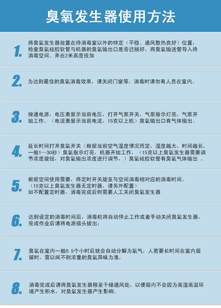 廣州佳環電器科技有限公司是專業從事臭氧系列設備的研發、生產及銷售為一體的臭氧發生器廠家。公司成立于2007年,經過多年發展,現已成為臭氧行業的領先企業,以雄厚的技術實力和豐富的臭氧行業經驗為依托,不斷的開發出新型臭氧產品面向市場。我們以臭氧發生器技術為核心,制造出多種規格臭氧產品,包括空氣源臭氧消毒機、氧氣源高濃度臭氧一體機、汽車消毒機、高濃度臭氧水一體機、臭氧消毒柜、畜禽養殖儀等大中小臭氧系列產品。 專業服務于食品殺菌,食品安全,制藥殺菌,泳池水消毒,海洋館,污水脫色,降COD,BOD,化工氧化,食用菌栽培滅菌技術,飲水安全、環保等十幾個行業的各種需求。佳環電器科技臭氧技術,臭氧發生器專用制氧技術,臭氧發生器水氣混合技術,臭氧機檢測技術,臭氧機水處理技術,臭氧行業應用技術等領域,在國內均處于領先地位。我公司臭氧設備以技術先進,性價比優勢而在行業上處于有力競爭地位。 自創業以來,公司不論是對社會、對客戶、對員工皆秉持誠意、正心、篤實、守法的態度來經營企業,建立起一貫良好的企業形象。誠信是寶貴的無形資產,是立業之本,以誠心為 已、服務為先、顧客為尊、想顧客之所想。 佳環臭氧發生器,臭氧消毒三大好處: 佳環臭氧發生器,運用范圍: 各區域使用介紹: 企業、學校等餐館臭氧應用: 由于人員較多,一旦出現事故就非常嚴重。而且也確實許多地方和學校發生了這些群體性的食物中毒和腸道傳染病等事件。這一系列事件的發生,嚴重影響了員工和學生的身心健康及正常秩序,也暴露對食品安全管理工作存在的漏洞、隱患和忽視。因而需要對食堂的管理和操作進行規范,同時需要對食品原材、廚具、餐具及食堂進行消毒,而傳統的消毒方法容易造成二次污染和殘留,因而越來越多的地方采用臭氧消毒殺菌。 要保證這些集體食堂的食品安全,可針對以下方面進行操作: 1、對食堂空間的殺菌消毒。 2、對食堂的工作服、廚具、餐具、原材等的殺菌消毒。 3、對食堂使用的水殺菌消毒等。 而通過臭氧發生器能很好的滿足這些要求,臭氧發生器具有以下有別于傳統殺菌方法的優點。 1、環保潔凈,無二次污染,臭氧消毒產物無害且自身不對環境產生污染,在環境中能自然分解成氧氣,因而是一種潔凈的凈化技術。 2、高效迅速,短時間見效,能有效殺滅各種微生物,趕走各類蚊蟲鼠蟻,有限扼制傳播途徑和傳染源。 3、適應性強,隨地即可用,就地取材產生高濃度臭氧且操作方便。 食品行業臭氧應用: 臭氧是強氧化劑,能有效氧化各類物質,殺滅各類微生物。還能脫色、去臭,對于其他方法難分解的物質也變成容易分解的物質。因此,在生產生活的用水和空間凈化處理方面,臭氧的作用顯著、使用廣泛,能應用于處理各類原水、廢水等,保障生產生活的正常進行。 臭氧的滅菌機制和滅菌特性 臭氧能作用于細菌和病毒等的細胞壁和細胞膜,作用于其脂質(類脂化合物)的雙鍵,將其氧化斷鏈從而將細胞膜、細胞質被破壞,從而達到滅菌的效果。 化妝品容器的消毒滅菌: ? 對管道容器做消毒滅菌的優點非常明顯,臭氧發生器可以流動使用,對不同的罐進行消毒,每個生產單元在每次換料前,都可以及時得到消毒,使用效率很高,很方便,不要用那么多的酒精,不要用氮氣,也不要用高壓蒸氣。所以在化妝品廠、食品廠得到了廣泛的推廣。 醫療衛生領域:醫院是治療疾病的地方,但是由于到醫院就診的人很大部分是危重患者,其炎癥正處于高峰時期,來自病人身上的有害病菌極易散發于空氣中。因此,醫院又是容易感染疾病的場所?,F在,由于到醫院就診引起交叉感染的事已司空見慣。醫院手術和護理操作前大夫或護士的雙手及手術器具的消毒問題也是亟待解決的課題之一。具有高效、迅速殺菌作用的臭氧在醫院環境消毒、術前消毒等方面大有用武之地。比如,日本科學家就研究過用于醫院的臭氧水消毒法。據其研究結果,用臭氧水對醫院手術前醫生、護士的雙手消毒,可殺死所有細菌,不僅時間極短,而且其消毒效果也是其他碘類消毒劑無法比擬的。傳統進行同樣的消毒操作至少需要10分鐘。在醫院中最易引起感染的黃色葡萄球菌和綠膿桿菌等在臭氧水中只需5秒鐘即可全部殺死,其殺菌力遠遠超過酒精和氯。而且臭氧水具有可靠的安全性,經常使用不會傷及肌膚,即使誤喝也不會中毒。 治療臭氧應用: 如俄羅斯研究出一種特殊的液壓液來治愈傷口,其基本方法就是在高壓下用霧狀富含臭氧的生理溶液沖洗傷口,水流就象手術刀一樣將傷口中的膿血、壞死組織及細菌分解物清除,同時殺死傷口表面的致病微生物。然后變換"臭氧刀"的結構,繼續增大液體的壓力,使臭氧化的溶液滲進發炎組織幾毫米至3厘米深,并增加氧氣,殺死更深層的致病細菌。據報道,用這種方法已治療過200例病人,他們都是一些糖尿病、膿毒病、血管動脈硬化及不宜施行通常外科手術的患者,結果這些病人的傷口全都完全愈合。 隨著科技發展,水產養殖技術也越來越完善,但因病原微生物、及水質狀況等因素對養殖業危害始終存在。以傳統的投加藥品進行預防和救護等方法以及不能起到很好的作用。人們迫切的需要尋找一種完善的技術來針對這一系列的問題。 水產養殖時臭氧應用: 通過臭氧發生器、臭氧消毒機產生的臭氧對水中的微生物、蟲