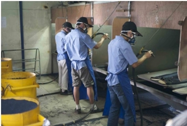 c) 人造石:由于天然的浮石含有礦物質比較多,尤其含鐵較多,因此難以通過驗針機,而一些衣服又要達到石磨特有的效果,這樣可以采用人造石。人造石是通過化學方法加工而成,其顆粒非常均勻,具有損耗小的特點,可達到一般的石磨效果。但價格較貴。